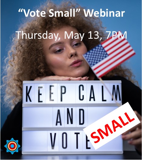 Vote Small Webinar Thursday, May 13th 7PM-8PM. Online.