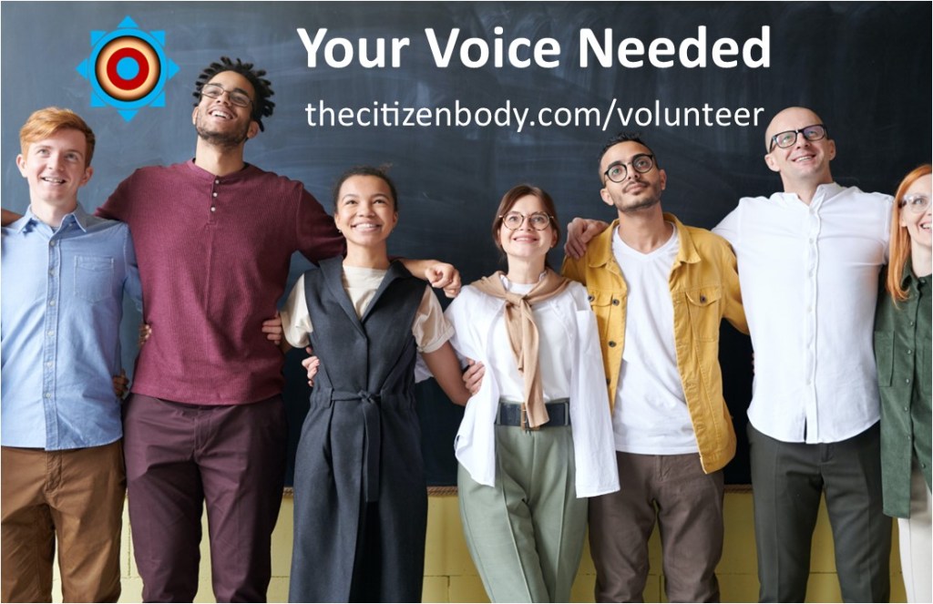 Add your talents to The Citizen Body Team … start as a volunteer, grow where you want to go …